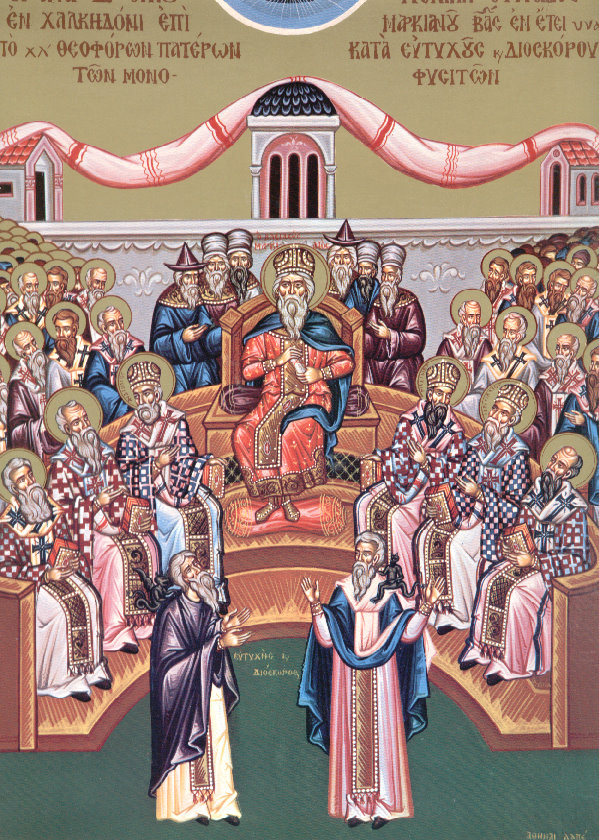 4) 451 senesinde Halkedon’da (Kadıköy) toplanan 630 Kilise babası, Meryem’den vücut alıp doğmasından sonra Mesih’te sadece Tanrısal tabiatın bulunduğunu öğreten Eutyches (Eftikhes) ile Kilise yasalarına uygunsuz bir şekilde Eutyches ile uzlaşan ve Eutyches’i aforoz etmiş Konstantinopolis Patriği Aziz Flavian’ı görevden alan İskenderiye Patriği Dioscorus’u mahkum etmiştir.